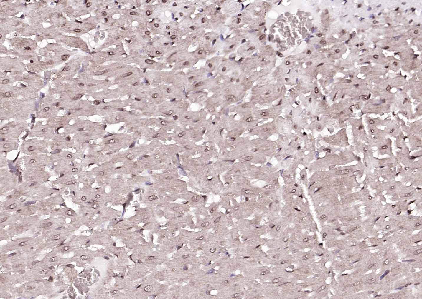 Paraformaldehyde-fixed, paraffin embedded (mouse heart); Antigen retrieval by boiling in sodium citrate buffer (pH6.0) for 15min; Block endogenous peroxidase by 3% hydrogen peroxide for 20 minutes; Blocking buffer (normal goat serum) at 37°C for 30min; Antibody incubation with (DBPA) Polyclonal Antibody, Unconjugated (bs-12985R) at 1:200 overnight at 4°C, followed by operating according to SP Kit(Rabbit) (sp-0023) instructionsand DAB staining.