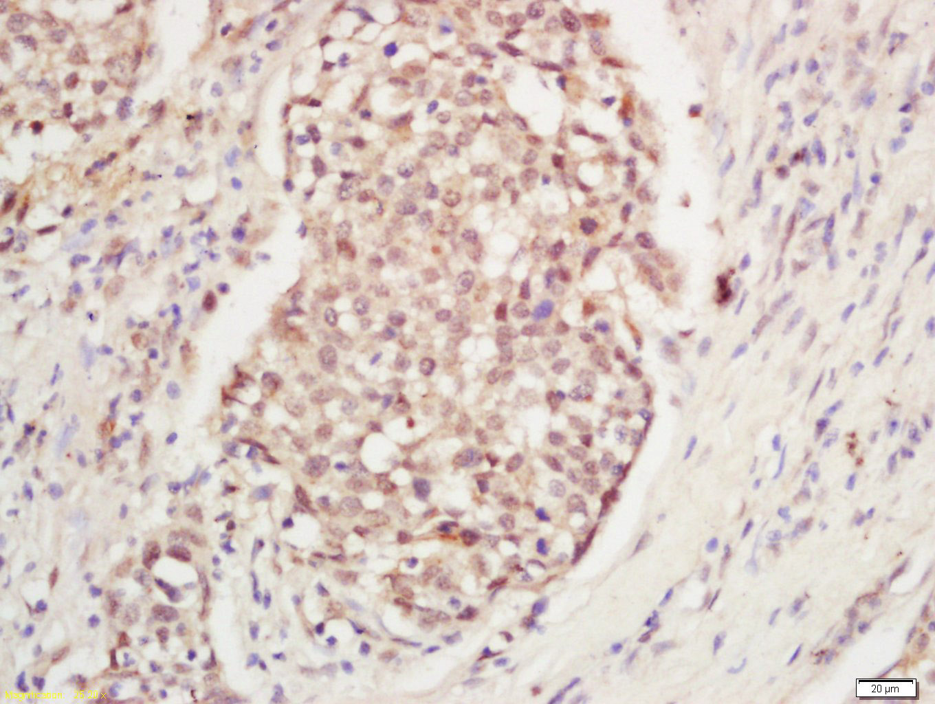 Antigen retrieval: citrate buffer ( 0.01M, pH 6.0 ), Boiling bathing for 15min; Block endogenous peroxidase by 3% Hydrogen peroxide for 30min; Blocking buffer (normal goat serum,C-0005) at 37℃ for 20 min;