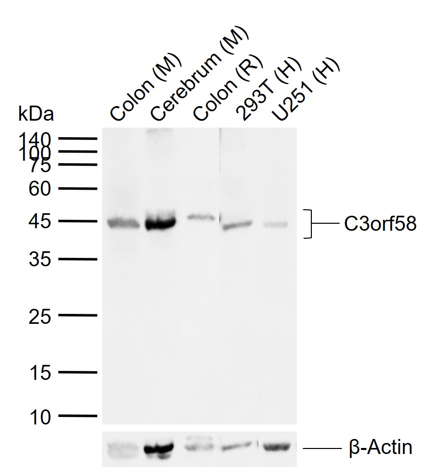 Primary: Anti-C3orf58 (bs-15179R) at 1/1000 dilution