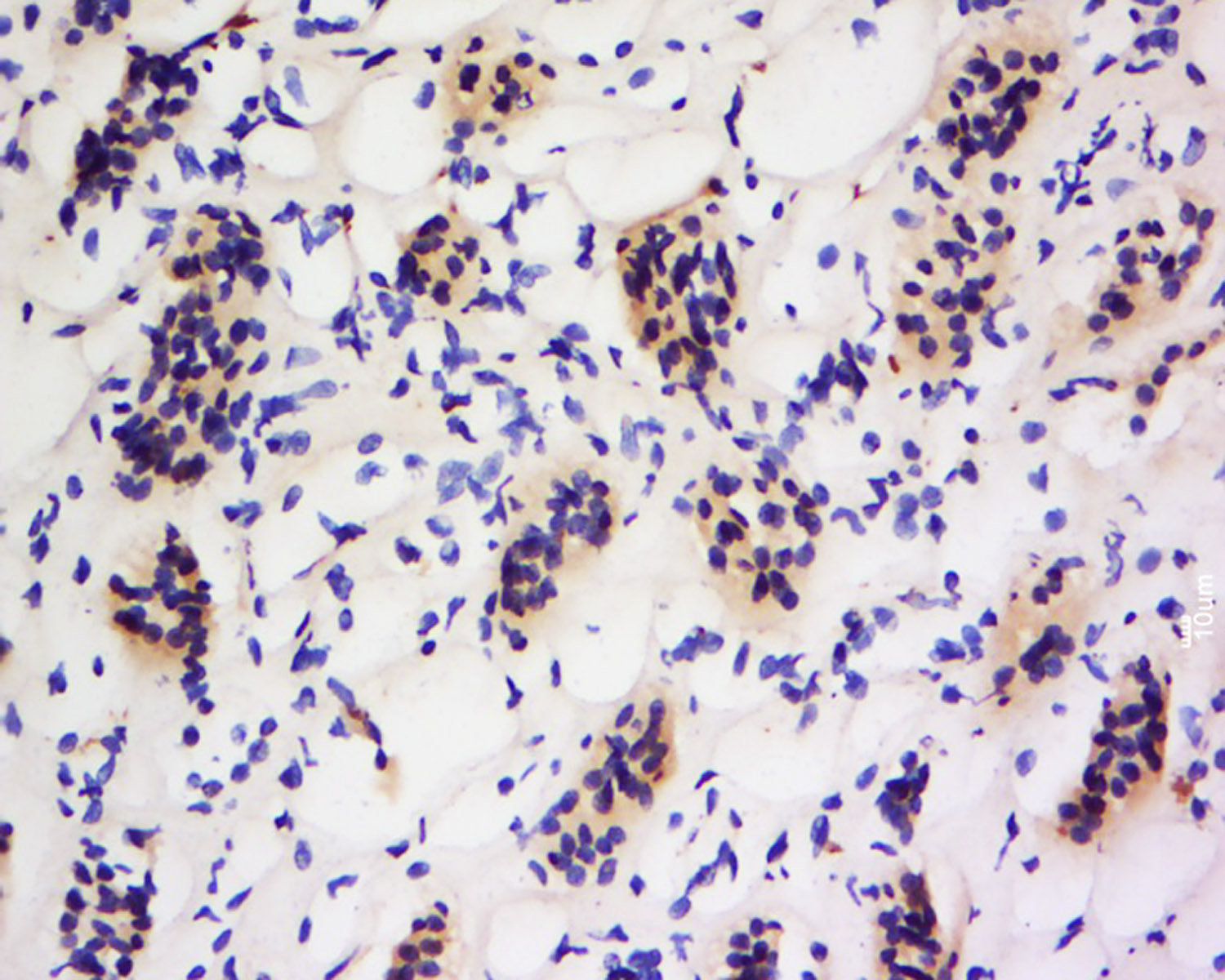 Antigen retrieval: citrate buffer ( 0.01M, pH 6.0 ), Boiling bathing for 15min; Block endogenous peroxidase by 3% Hydrogen peroxide for 30min; Blocking buffer (normal goat serum,C-0005) at 37℃ for 20 min;