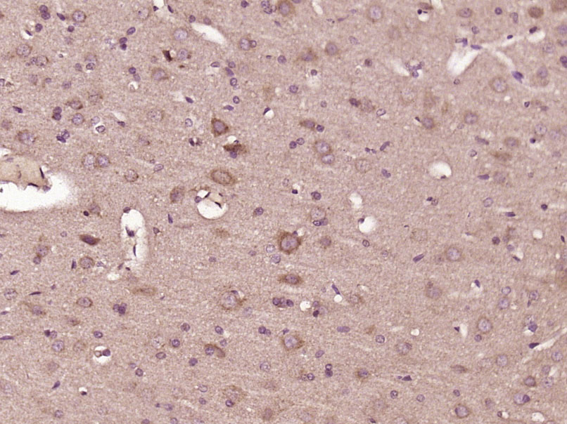 Paraformaldehyde-fixed, paraffin embedded (Rat brain); Antigen retrieval by boiling in sodium citrate buffer (pH6.0) for 15min; Block endogenous peroxidase by 3% hydrogen peroxide for 20 minutes; Blocking buffer (normal goat serum) at 37°C for 30min; Antibody incubation with (FSD1) Polyclonal Antibody, Unconjugated (bs-13220R) at 1:400 overnight at 4°C, followed by operating according to SP Kit(Rabbit) (sp-0023) instructionsand DAB staining.