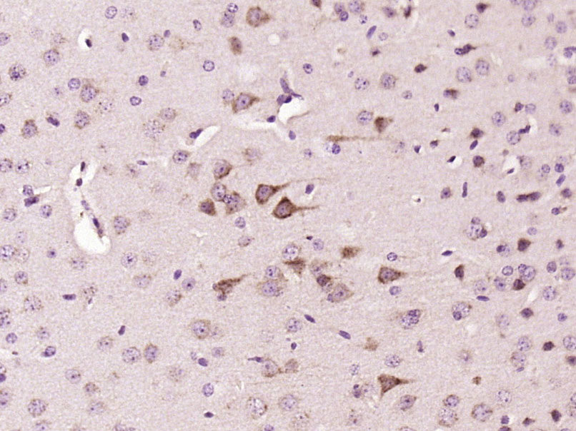 Paraformaldehyde-fixed, paraffin embedded (Mouse brain); Antigen retrieval by boiling in sodium citrate buffer (pH6.0) for 15min; Block endogenous peroxidase by 3% hydrogen peroxide for 20 minutes; Blocking buffer (normal goat serum) at 37°C for 30min; Antibody incubation with (FSD1) Polyclonal Antibody, Unconjugated (bs-13220R) at 1:400 overnight at 4°C, followed by operating according to SP Kit(Rabbit) (sp-0023) instructionsand DAB staining.