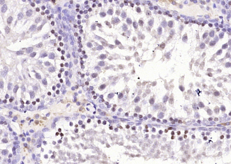 Paraformaldehyde-fixed, paraffin embedded (rat testis tissue); Antigen retrieval by boiling in sodium citrate buffer (pH6.0) for 15min; Block endogenous peroxidase by 3% hydrogen peroxide for 20 minutes; Blocking buffer (normal goat serum) at 37°C for 30min; Antibody incubation with (FYTTD1) Polyclonal Antibody, Unconjugated (bs-13238R) at 1:400 overnight at 4°C, followed by operating according to SP Kit(Rabbit) (sp-0023) instructionsand DAB staining.