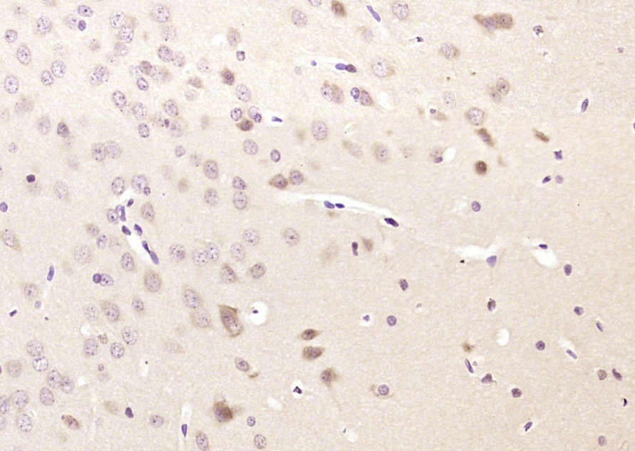 Paraformaldehyde-fixed, paraffin embedded (rat brain); Antigen retrieval by boiling in sodium citrate buffer (pH6.0) for 15min; Block endogenous peroxidase by 3% hydrogen peroxide for 20 minutes; Blocking buffer (normal goat serum) at 37°C for 30min; Antibody incubation with (GARNL1) Polyclonal Antibody, Unconjugated (bs-13286R) at 1:200 overnight at 4°C, followed by operating according to SP Kit(Rabbit) (sp-0023) instructionsand DAB staining.