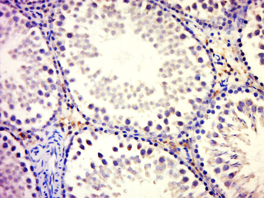 Paraformaldehyde-fixed, paraffin embedded (Rat testis); Antigen retrieval by boiling in sodium citrate buffer (pH6.0) for 15min; Block endogenous peroxidase by 3% hydrogen peroxide for 20 minutes; Blocking buffer (normal goat serum) at 37°C for 30min; Antibody incubation with (GFM2) Polyclonal Antibody, Unconjugated (bs-13339R) at 1:500 overnight at 4°C, followed by a conjugated secondary (sp-0023) for 20 minutes and DAB staining.