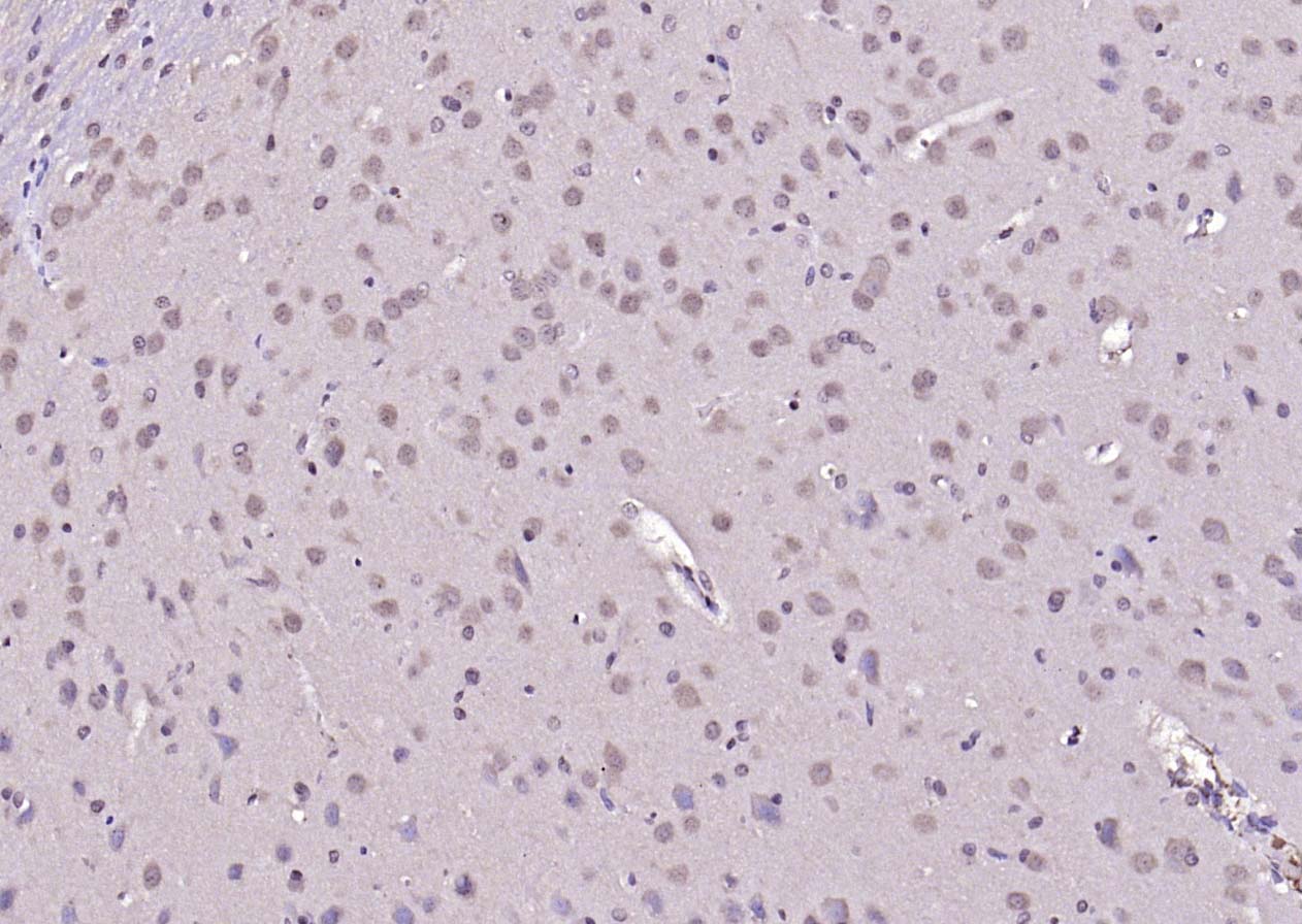 Paraformaldehyde-fixed, paraffin embedded (mouse brain); Antigen retrieval by boiling in sodium citrate buffer (pH6.0) for 15min; Block endogenous peroxidase by 3% hydrogen peroxide for 20 minutes; Blocking buffer (normal goat serum) at 37°C for 30min; Antibody incubation with (ADRM1) Polyclonal Antibody, Unconjugated (bs-13357R) at 1:200 overnight at 4°C, followed by operating according to SP Kit(Rabbit) (sp-0023) instructionsand DAB staining.