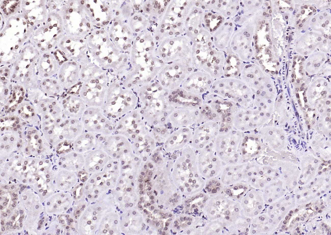 Paraformaldehyde-fixed, paraffin embedded (rat kidney); Antigen retrieval by boiling in sodium citrate buffer (pH6.0) for 15min; Block endogenous peroxidase by 3% hydrogen peroxide for 20 minutes; Blocking buffer (normal goat serum) at 37°C for 30min; Antibody incubation with (ADRM1) Polyclonal Antibody, Unconjugated (bs-13357R) at 1:200 overnight at 4°C, followed by operating according to SP Kit(Rabbit) (sp-0023) instructionsand DAB staining.