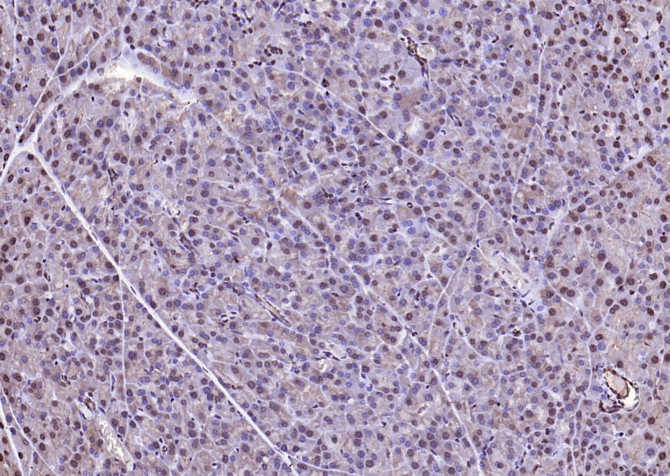 Paraformaldehyde-fixed, paraffin embedded (rat pancreas); Antigen retrieval by boiling in sodium citrate buffer (pH6.0) for 15min; Block endogenous peroxidase by 3% hydrogen peroxide for 20 minutes; Blocking buffer (normal goat serum) at 37°C for 30min; Antibody incubation with (ADRM1) Polyclonal Antibody, Unconjugated (bs-13357R) at 1:200 overnight at 4°C, followed by operating according to SP Kit(Rabbit) (sp-0023) instructionsand DAB staining.