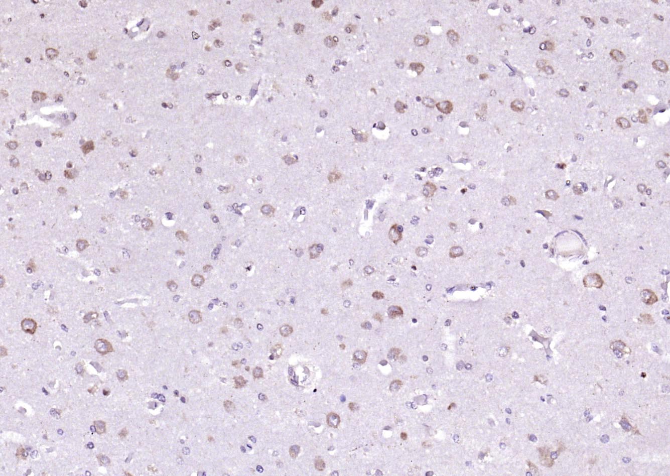 Paraformaldehyde-fixed, paraffin embedded (human brain); Antigen retrieval by boiling in sodium citrate buffer (pH6.0) for 15min; Block endogenous peroxidase by 3% hydrogen peroxide for 20 minutes; Blocking buffer (normal goat serum) at 37°C for 30min; Antibody incubation with (ADRM1) Polyclonal Antibody, Unconjugated (bs-13357R) at 1:200 overnight at 4°C, followed by operating according to SP Kit(Rabbit) (sp-0023) instructionsand DAB staining.