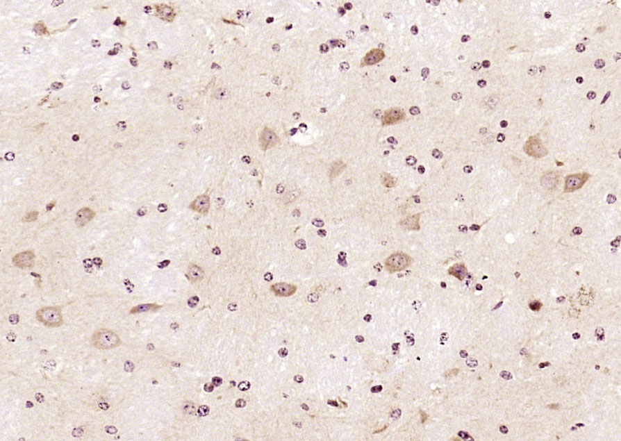Paraformaldehyde-fixed, paraffin embedded (rat brain); Antigen retrieval by boiling in sodium citrate buffer (pH6.0) for 15min; Block endogenous peroxidase by 3% hydrogen peroxide for 20 minutes; Blocking buffer (normal goat serum) at 37°C for 30min; Antibody incubation with (QARS Glutamyl Prolyl tRNA synthetase) Polyclonal Antibody, Unconjugated (bs-13393R) at 1:200 overnight at 4°C, followed by operating according to SP Kit(Rabbit) (sp-0023) instructionsand DAB staining.