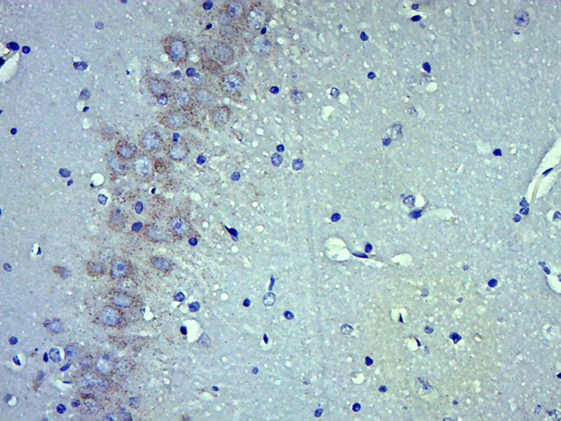 Paraformaldehyde-fixed, paraffin embedded (Mouse brain); Antigen retrieval by boiling in sodium citrate buffer (pH6.0) for 15min; Block endogenous peroxidase by 3% hydrogen peroxide for 20 minutes; Blocking buffer (normal goat serum) at 37°C for 30min; Antibody incubation with (Somatostatin 28) Polyclonal Antibody, Unconjugated (bs-8877R) at 1:400 overnight at 4°C, followed by operating according to SP Kit(Rabbit) (sp-0023) instructionsand DAB staining.