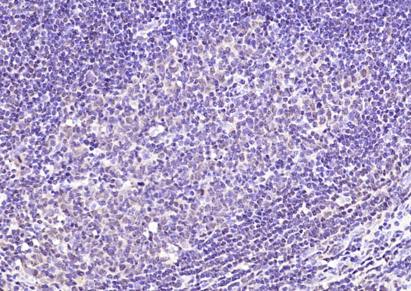 Paraformaldehyde-fixed, paraffin embedded (human tonsil); Antigen retrieval by boiling in sodium citrate buffer (pH6.0) for 15min; Block endogenous peroxidase by 3% hydrogen peroxide for 20 minutes; Blocking buffer (normal goat serum) at 37°C for 30min; Antibody incubation with (phospho-NFATC4 (Ser168 + Ser170)) Polyclonal Antibody, Unconjugated (bs-8535R) at 1:200 overnight at 4°C, followed by operating according to SP Kit(Rabbit) (sp-0023) instructionsand DAB staining.