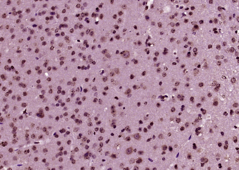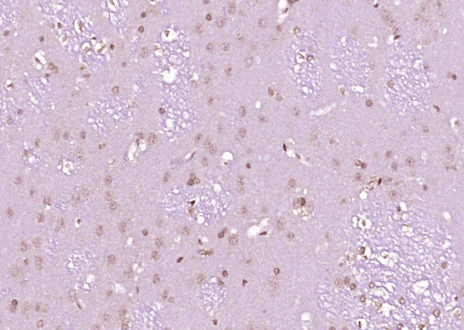 Paraformaldehyde-fixed, paraffin embedded (Rat brain); Antigen retrieval by boiling in sodium citrate buffer (pH6.0) for 15min; Block endogenous peroxidase by 3% hydrogen peroxide for 20 minutes; Blocking buffer (normal goat serum) at 37°C for 30min; Antibody incubation with (c-fos) Polyclonal Antibody, Unconjugated (bs-10172R) at 1:400 overnight at 4°C, followed by operating according to SP Kit(Rabbit) (sp-0023) instructionsand DAB staining.