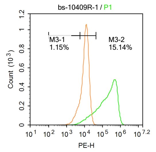 Primary Antibody (green line): Rabbit Anti-CCL26 antibody (bs-10409R)