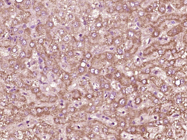 Paraformaldehyde-fixed, paraffin embedded (human liver carcinoma); Antigen retrieval by boiling in sodium citrate buffer (pH6.0) for 15min; Block endogenous peroxidase by 3% hydrogen peroxide for 20 minutes; Blocking buffer (normal goat serum) at 37°C for 30min; Antibody incubation with (CCL26) Polyclonal Antibody, Unconjugated (bs-15512R) at 1:400 overnight at 4°C, followed by operating according to SP Kit(Rabbit) (sp-0023) instructionsand DAB staining.