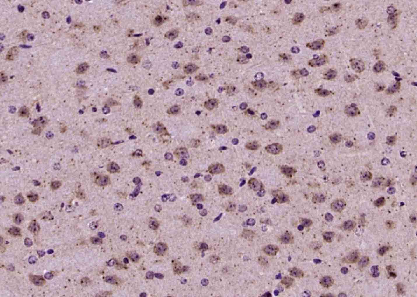 Paraformaldehyde-fixed, paraffin embedded (mouse brain); Antigen retrieval by boiling in sodium citrate buffer (pH6.0) for 15min; Block endogenous peroxidase by 3% hydrogen peroxide for 20 minutes; Blocking buffer (normal goat serum) at 37°C for 30min; Antibody incubation with (ICK) Polyclonal Antibody, Unconjugated (bs-15536R) at 1:200 overnight at 4°C, followed by operating according to SP Kit(Rabbit) (sp-0023) instructionsand DAB staining.