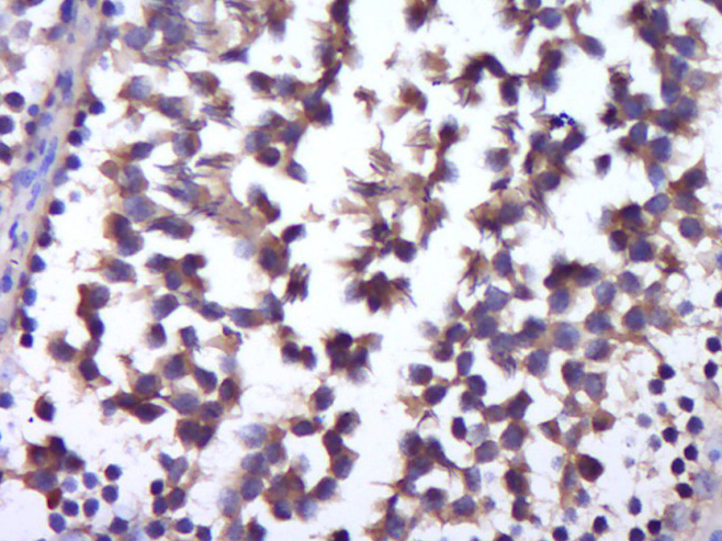 Paraformaldehyde-fixed, paraffin embedded (Rat testis); Antigen retrieval by boiling in sodium citrate buffer (pH6.0) for 15min; Block endogenous peroxidase by 3% hydrogen peroxide for 20 minutes; Blocking buffer (normal goat serum) at 37°C for 30min; Antibody incubation with (GSK3 Alpha + Beta) Polyclonal Antibody, Unconjugated (bs-7332R) at 1:400 overnight at 4°C, followed by operating according to SP Kit(Rabbit) (sp-0023) instructions and DAB staining.