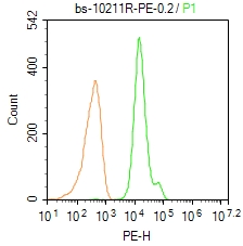 Primary Antibody (green line): Rabbit Anti-FoxP3/PE Conjugated antibody (bs-10211R-PE)