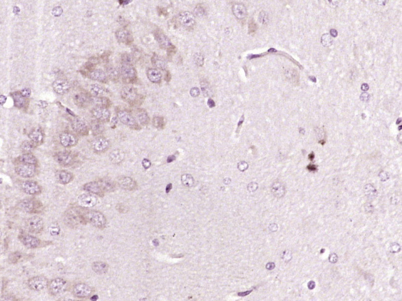 Paraformaldehyde-fixed, paraffin embedded (Rat brain); Antigen retrieval by boiling in sodium citrate buffer (pH6.0) for 15min; Block endogenous peroxidase by 3% hydrogen peroxide for 20 minutes; Blocking buffer (normal goat serum) at 37°C for 30min; Antibody incubation with (SIRT2) Polyclonal Antibody, Unconjugated (bs-7350R) at 1:400 overnight at 4°C, followed by operating according to SP Kit(Rabbit) (sp-0023) instructionsand DAB staining.