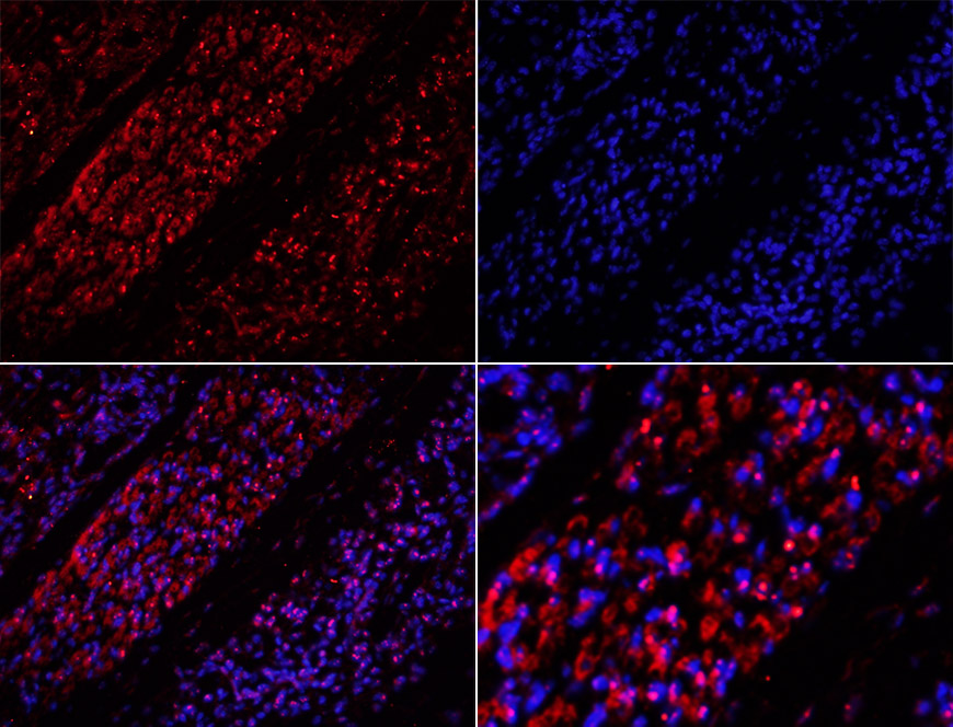 | 產(chǎn)品應(yīng)用 | WB=1:500-2000,IHC-P=1:100-500,IHC-F=1:100-500,IF=1:100-500