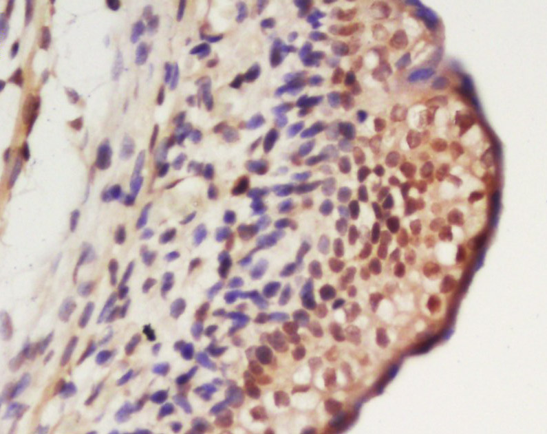 Antigen retrieval: citrate buffer ( 0.01M, pH 6.0 ), Boiling bathing for 15min; Block endogenous peroxidase by 3% Hydrogen peroxide for 30min; Blocking buffer (normal goat serum,C-0005) at 37℃ for 20 min;