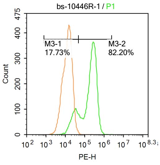Primary Antibody (green line): Rabbit Anti-HPV16 E7 antibody (bs-10446R)