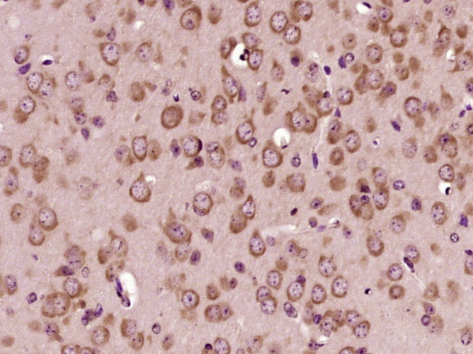 Paraformaldehyde-fixed, paraffin embedded (Mouse brain); Antigen retrieval by boiling in sodium citrate buffer (pH6.0) for 15min; Block endogenous peroxidase by 3% hydrogen peroxide for 20 minutes; Blocking buffer (normal goat serum) at 37°C for 30min; Antibody incubation with (Density Regulated Protein) Polyclonal Antibody, Unconjugated (bs-14276R) at 1:400 overnight at 4°C, followed by operating according to SP Kit(Rabbit) (sp-0023) instructionsand DAB staining.