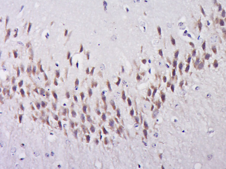 Paraformaldehyde-fixed, paraffin embedded (Mouse brain); Antigen retrieval by boiling in sodium citrate buffer (pH6.0) for 15min; Block endogenous peroxidase by 3% hydrogen peroxide for 20 minutes; Blocking buffer (normal goat serum) at 37°C for 30min; Antibody incubation with (EFCAB4B) Polyclonal Antibody, Unconjugated (bs-14512R) at 1:400 overnight at 4°C, followed by operating according to SP Kit(Rabbit) (sp-0023) instructions and DAB staining.