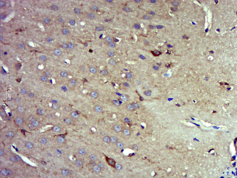 Paraformaldehyde-fixed, paraffin embedded (Rat brain); Antigen retrieval by boiling in sodium citrate buffer (pH6.0) for 15min; Block endogenous peroxidase by 3% hydrogen peroxide for 20 minutes; Blocking buffer (normal goat serum) at 37°C for 30min; Antibody incubation with (eIF3s8) Polyclonal Antibody, Unconjugated (bs-14546R ) at 1:400 overnight at 4°C, followed by operating according to SP Kit(Rabbit) (sp-0023) instructionsand DAB staining.