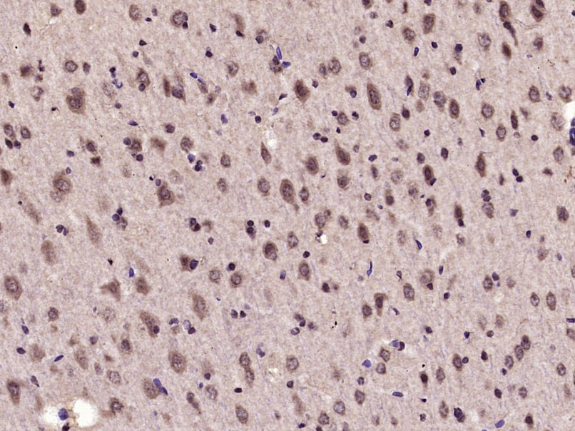 Paraformaldehyde-fixed, paraffin embedded (Rat brain); Antigen retrieval by microwave in sodium citrate buffer (pH6.0) ; Block endogenous peroxidase by 3% hydrogen peroxide for 30 minutes; Blocking buffer (3% BSA) at RT for 30min; Antibody incubation with (phospho-eIF4EBP1 (Thr70)) Polyclonal Antibody, Unconjugated (bs-14550R) at 1:400 overnight at 4°C, followed by conjugation to the secondary antibody (labeled with HRP)and DAB staining.