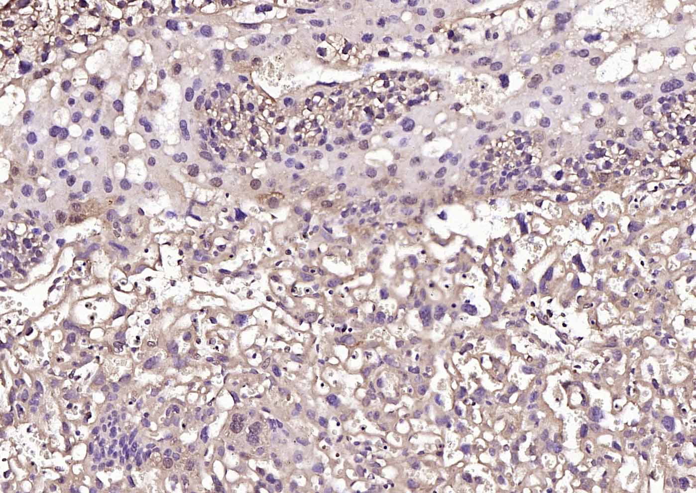Paraformaldehyde-fixed, paraffin embedded (rat placenta); Antigen retrieval by boiling in sodium citrate buffer (pH6.0) for 15min; Block endogenous peroxidase by 3% hydrogen peroxide for 20 minutes; Blocking buffer (normal goat serum) at 37°C for 30min; Incubation with (phospho-HSF1 (Ser303 + Ser307)) Polyclonal Antibody, Unconjugated (bs-16556R) at 1:200 overnight at 4°C, followed by operating according to SP Kit(Rabbit) (sp-0023) instructionsand DAB staining.