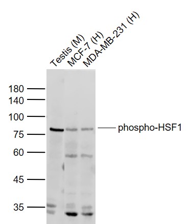 | 英文名稱 | phospho-HSF1 (Ser303 + Ser307) Rabbit pAb |