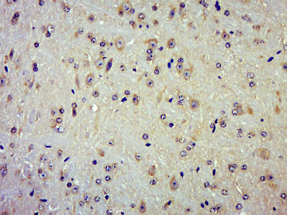 Paraformaldehyde-fixed, paraffin embedded (Mouse brain); Antigen retrieval by boiling in sodium citrate buffer (pH6.0) for 15min; Block endogenous peroxidase by 3% hydrogen peroxide for 20 minutes; Blocking buffer (normal goat serum) at 37°C for 30min; Antibody incubation with (TRAPPCL2) Polyclonal Antibody, Unconjugated (bs-16590R) at 1:500 overnight at 4°C, followed by a conjugated secondary (sp-0023) for 20 minutes and DAB staining.