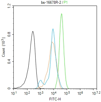 Primary Antibody (green line): Rabbit Anti-phospho-HSF1 (Thr142) antibody (bs-16678R)
