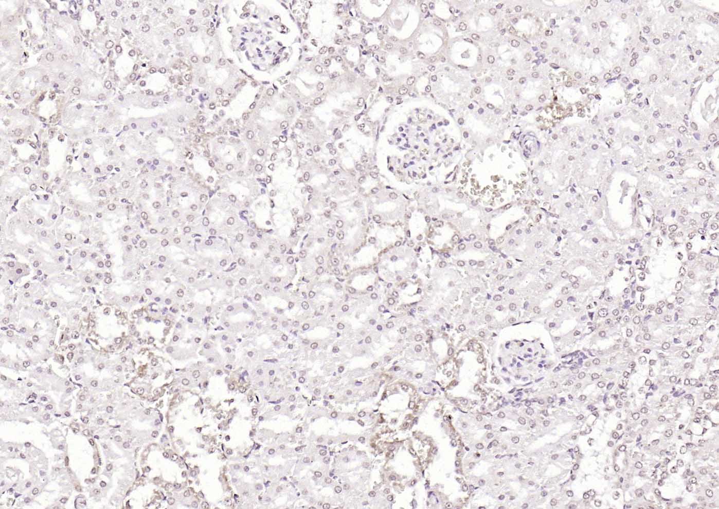 Paraformaldehyde-fixed, paraffin embedded (rat kidney); Antigen retrieval by boiling in sodium citrate buffer (pH6.0) for 15min; Block endogenous peroxidase by 3% hydrogen peroxide for 20 minutes; Blocking buffer (normal goat serum) at 37°C for 30min; Incubation with (KLF12 ) Polyclonal Antibody, Unconjugated (bs-16783R) at 1:200 overnight at 4°C, followed by operating according to SP Kit(Rabbit) (sp-0023) instructionsand DAB staining.