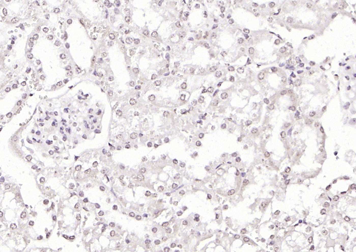 Paraformaldehyde-fixed, paraffin embedded (mouse kidney); Antigen retrieval by boiling in sodium citrate buffer (pH6.0) for 15min; Block endogenous peroxidase by 3% hydrogen peroxide for 20 minutes; Blocking buffer (normal goat serum) at 37°C for 30min; Incubation with (KLF12 ) Polyclonal Antibody, Unconjugated (bs-16783R) at 1:200 overnight at 4°C, followed by operating according to SP Kit(Rabbit) (sp-0023) instructionsand DAB staining.