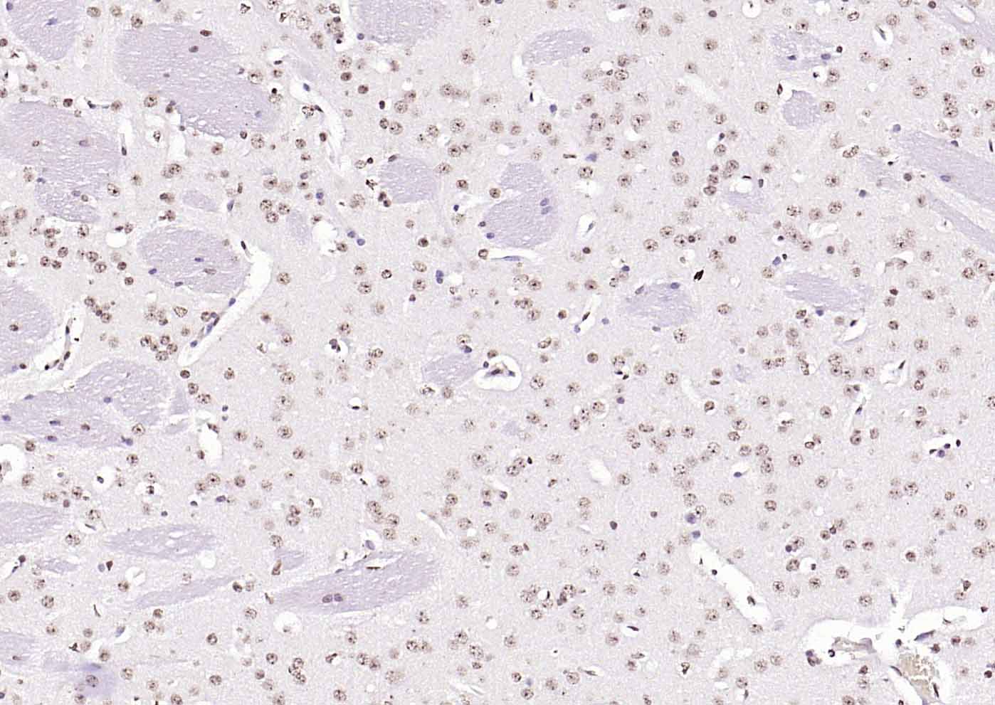 Paraformaldehyde-fixed, paraffin embedded (rat brain); Antigen retrieval by boiling in sodium citrate buffer (pH6.0) for 15min; Block endogenous peroxidase by 3% hydrogen peroxide for 20 minutes; Blocking buffer (normal goat serum) at 37°C for 30min; Incubation with (KLF12 ) Polyclonal Antibody, Unconjugated (bs-16783R) at 1:200 overnight at 4°C, followed by operating according to SP Kit(Rabbit) (sp-0023) instructionsand DAB staining.
