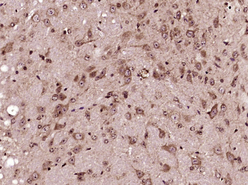 Paraformaldehyde-fixed, paraffin embedded (Mouse brain); Antigen retrieval by boiling in sodium citrate buffer (pH6.0) for 15min; Block endogenous peroxidase by 3% hydrogen peroxide for 20 minutes; Blocking buffer (normal goat serum) at 37°C for 30min; Antibody incubation with (Kv1.2) Polyclonal Antibody, Unconjugated (bs-16865R) at 1:400 overnight at 4°C, followed by operating according to SP Kit(Rabbit) (sp-0023) instructionsand DAB staining.