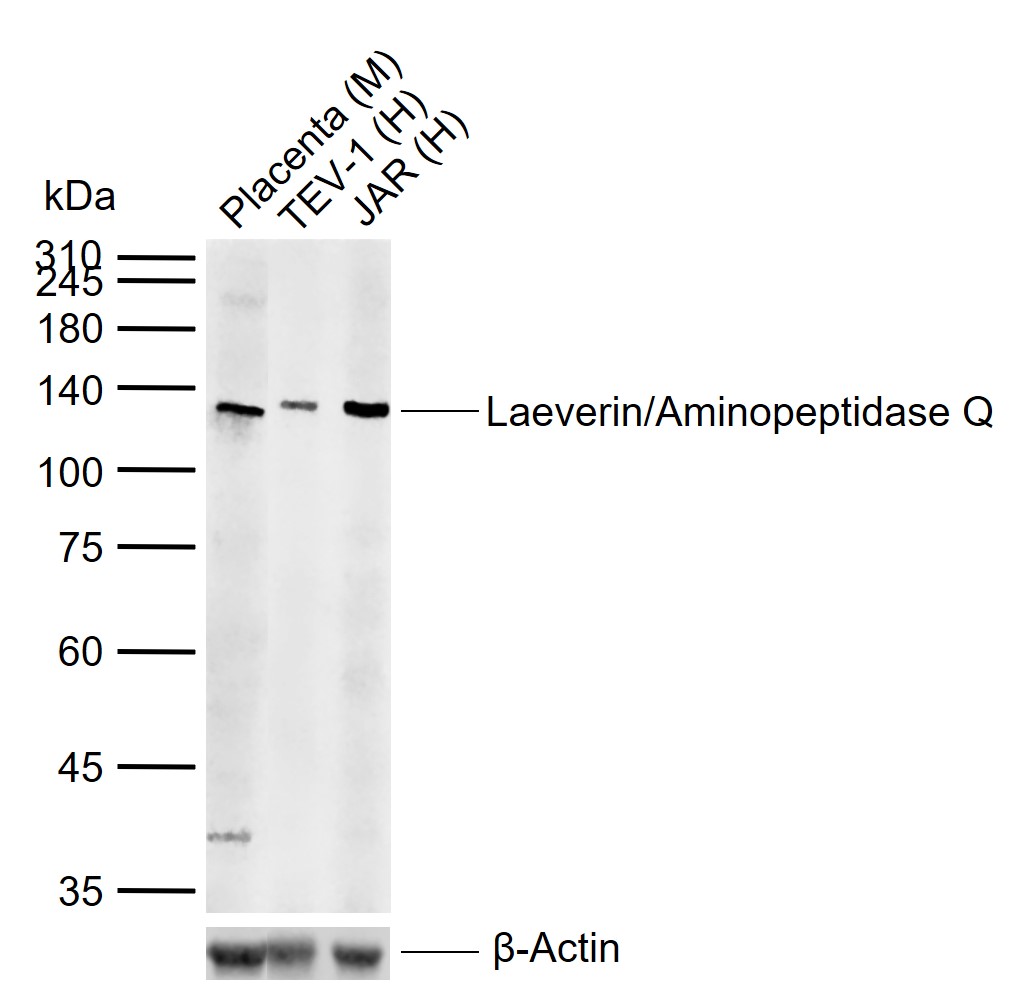 Primary: Anti-Laeverin/Aminopeptidase Q (bs-16883R) at 1/1000 dilution
