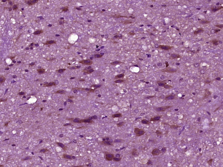 Paraformaldehyde-fixed, paraffin embedded (Rat spinal cord); Antigen retrieval by boiling in sodium citrate buffer (pH6.0) for 15min; Block endogenous peroxidase by 3% hydrogen peroxide for 20 minutes; Blocking buffer (normal goat serum) at 37°C for 30min; Antibody incubation with (GALA) Polyclonal Antibody, Unconjugated (bs-10734R) at 1:400 overnight at 4°C, followed by operating according to SP Kit(Rabbit) (sp-0023) instructionsand DAB staining.