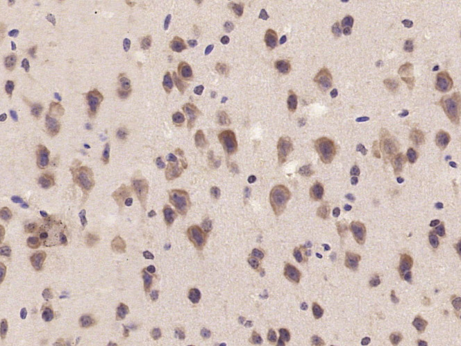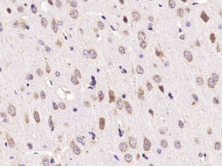 Paraformaldehyde-fixed, paraffin embedded (rat brain tissue); Antigen retrieval by microwave in sodium citratebuffer (pH6.0) ; Block endogenous peroxidase by 3% hydrogen peroxide for 30 minutes; Blocking buffer (3%BSA) at RTfor 30min; Antibody incubation with (Galanin) Polyclonal/MonoclonalAntibody, Unconjugated (bs-0017R) at 1:400 overnight at 4℃,followed by conjugation to the secondary antibody (labeled with HRP)and DAB staining.