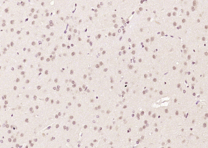 Paraformaldehyde-fixed, paraffin embedded (rat brain); Antigen retrieval by boiling in sodium citrate buffer (pH6.0) for 15min; Block endogenous peroxidase by 3% hydrogen peroxide for 20 minutes; Blocking buffer (normal goat serum) at 37°C for 30min; Antibody incubation with (Ataxin 3) Polyclonal Antibody, Unconjugated (bs-17208R) at 1:200 overnight at 4°C, followed by operating according to SP Kit(Rabbit) (sp-0023) instructionsand DAB staining.