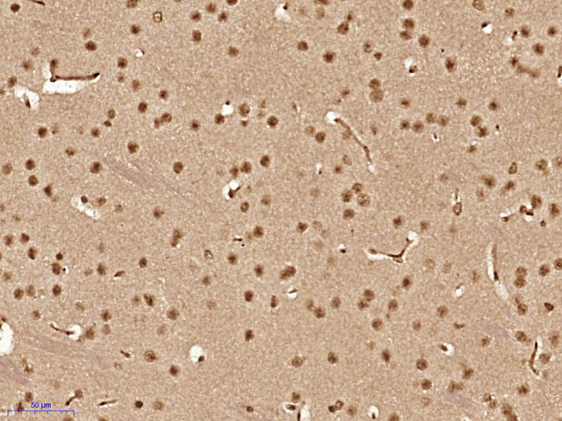 Paraformaldehyde-fixed, paraffin embedded (Mouse brain); Antigen retrieval by boiling in sodium citrate buffer (pH6.0) for 15min; Block endogenous peroxidase by 3% hydrogen peroxide for 20 minutes; Blocking buffer (normal goat serum) at 37°C for 30min; Antibody incubation with (SCAND1) Polyclonal Antibody, Unconjugated (bs-17266R) at 1:400 overnight at 4°C, followed by operating according to SP Kit(Rabbit) (sp-0023) instructionsand DAB staining.