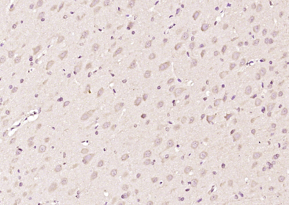 Paraformaldehyde-fixed, paraffin embedded (rat brain); Antigen retrieval by boiling in sodium citrate buffer (pH6.0) for 15min; Block endogenous peroxidase by 3% hydrogen peroxide for 20 minutes; Blocking buffer (normal goat serum) at 37°C for 30min; Antibody incubation with (Topoisomerase II beta) Polyclonal Antibody, Unconjugated (bs-17324R) at 1:200 overnight at 4°C, followed by operating according to SP Kit(Rabbit) (sp-0023) instructionsand DAB staining.