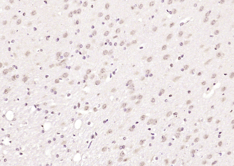 Paraformaldehyde-fixed, paraffin embedded (rat brain); Antigen retrieval by boiling in sodium citrate buffer (pH6.0) for 15min; Block endogenous peroxidase by 3% hydrogen peroxide for 20 minutes; Blocking buffer (normal goat serum) at 37°C for 30min; Antibody incubation with (hnRNP A1) Polyclonal Antibody, Unconjugated (bs-17330R) at 1:200 overnight at 4°C, followed by operating according to SP Kit(Rabbit) (sp-0023) instructionsand DAB staining.