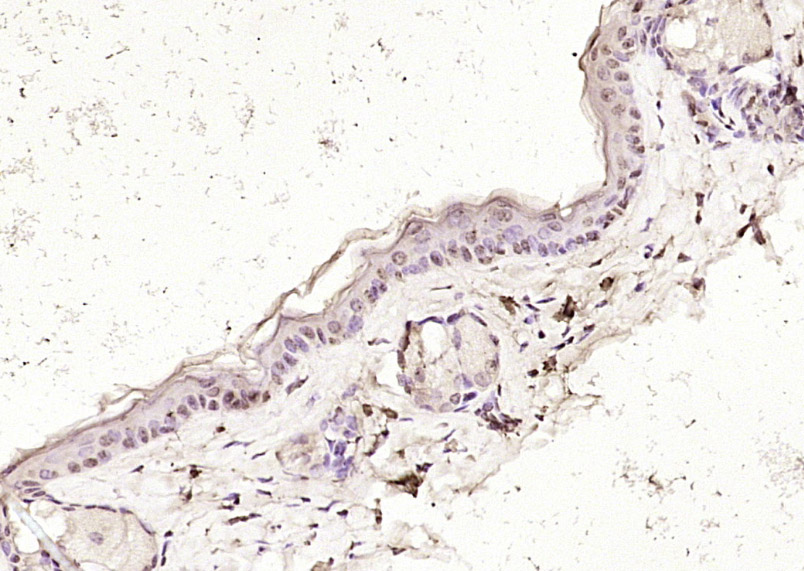 Paraformaldehyde-fixed, paraffin embedded (mouse skin); Antigen retrieval by boiling in sodium citrate buffer (pH6.0) for 15min; Block endogenous peroxidase by 3% hydrogen peroxide for 20 minutes; Blocking buffer (normal goat serum) at 37°C for 30min; Antibody incubation with (hnRNP A1) Polyclonal Antibody, Unconjugated (bs-17330R) at 1:200 overnight at 4°C, followed by operating according to SP Kit(Rabbit) (sp-0023) instructionsand DAB staining.