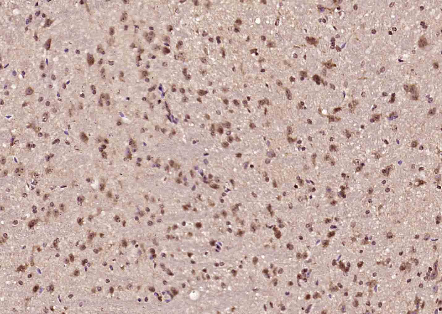 Paraformaldehyde-fixed, paraffin embedded (mouse brain); Antigen retrieval by boiling in sodium citrate buffer (pH6.0) for 15min; Block endogenous peroxidase by 3% hydrogen peroxide for 20 minutes; Blocking buffer (normal goat serum) at 37°C for 30min; Antibody incubation with (hnRNP H2) Polyclonal Antibody, Unconjugated (bs-17344R) at 1:200 overnight at 4°C, followed by operating according to SP Kit(Rabbit) (sp-0023) instructionsand DAB staining.