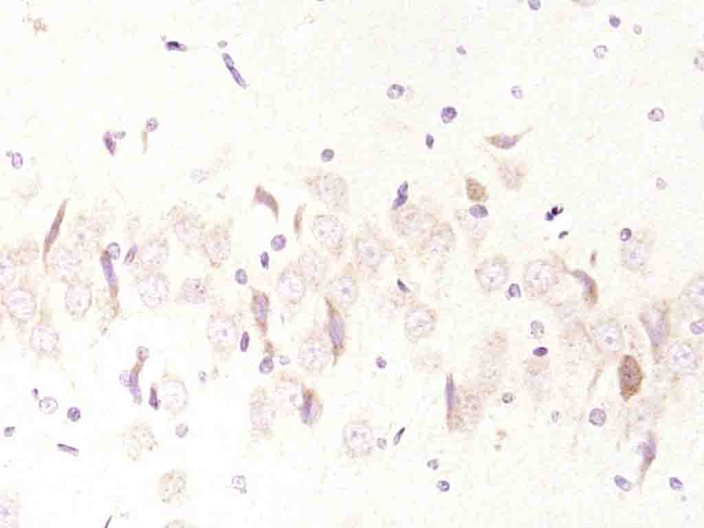 Paraformaldehyde-fixed, paraffin embedded (rat brain); Antigen retrieval by boiling in sodium citrate buffer (pH6.0) for 15min; Block endogenous peroxidase by 3% hydrogen peroxide for 20 minutes; Blocking buffer (normal goat serum) at 37°C for 30min; Antibody incubation with (RWASF3) Polyclonal Antibody, Unconjugated (bs-10578) at 1:200 overnight at 4°C, followed by operating according to SP Kit(Rabbit) (sp-0023) instructionsand DAB staining.
