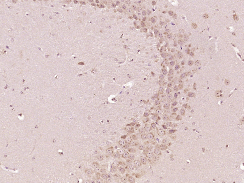 Paraformaldehyde-fixed, paraffin embedded (Mouse brain); Antigen retrieval by boiling in sodium citrate buffer (pH6.0) for 15min; Block endogenous peroxidase by 3% hydrogen peroxide for 20 minutes; Blocking buffer (normal goat serum) at 37°C for 30min; Antibody incubation with (OSGEP) Polyclonal Antibody, Unconjugated (bs-17526R) at 1:400 overnight at 4°C, followed by operating according to SP Kit(Rabbit) (sp-0023) instructionsand DAB staining.