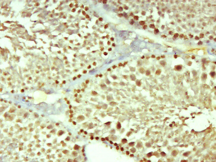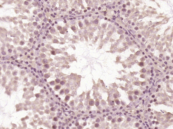 Paraformaldehyde-fixed, paraffin embedded (rat testis tissue); Antigen retrieval by boiling in sodium citrate buffer (pH6.0) for 15min; Block endogenous peroxidase by 3% hydrogen peroxide for 20 minutes; Blocking buffer (normal goat serum) at 37°C for 30min; Antibody incubation with (OTUD1) Polyclonal Antibody, Unconjugated (bs-17563R) at 1:400 overnight at 4°C, followed by operating according to SP Kit(Rabbit) (sp-0023) instructionsand DAB staining.